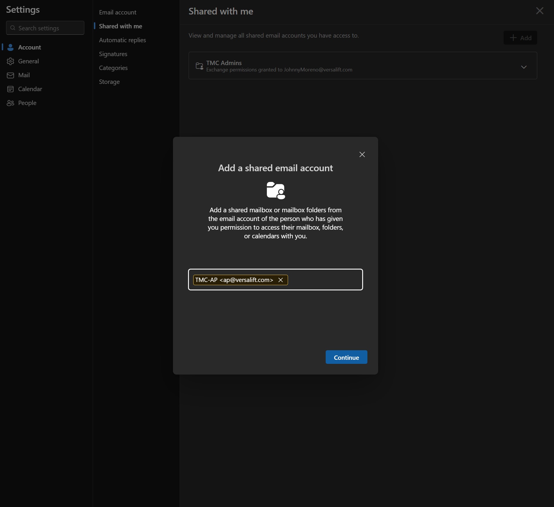 A Shared Mailbox is a users or department mailbox in which multiple personnel can be granted access and act as the accounts owner. At times employees who have left the company will automatically be moved into a shared mailbox category. Departments with a single account for a specific service will also have a shared mailbox within their department.
